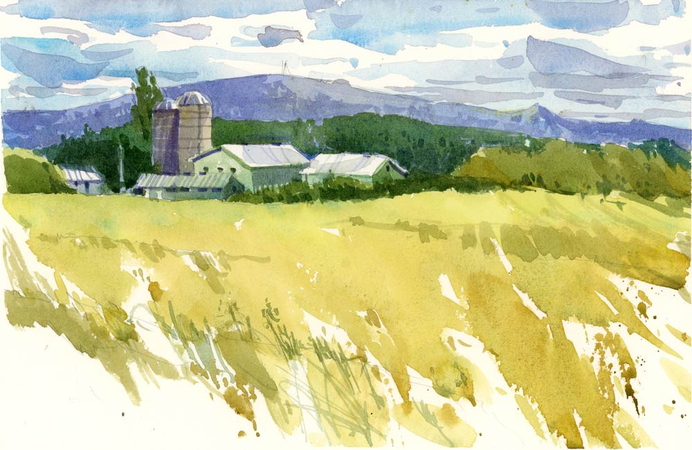Posted: September 10, 2012 Filed under: Uncategorized 15 CommentsThis is the second part of my sketching outing in the Hemmingford area yesterday. In the morning I sketched from Covey Hill looking down into the valley and in the afternoon I looked back up at Covey Hill. As the leaves turn to red and the great swaths of cornfield turn to yellow I will certainly go back there.